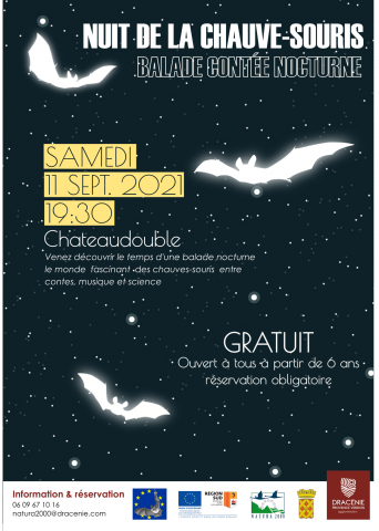 ![]() | Cette année Dracénie Provence Verdon Agglomération organise la Nuit de la Chauve-souris sur son territoire en partenariat avec la commune de Chateaudouble qui accueillera cette soirée très spéciale dédiée à ces incroyables créatures.